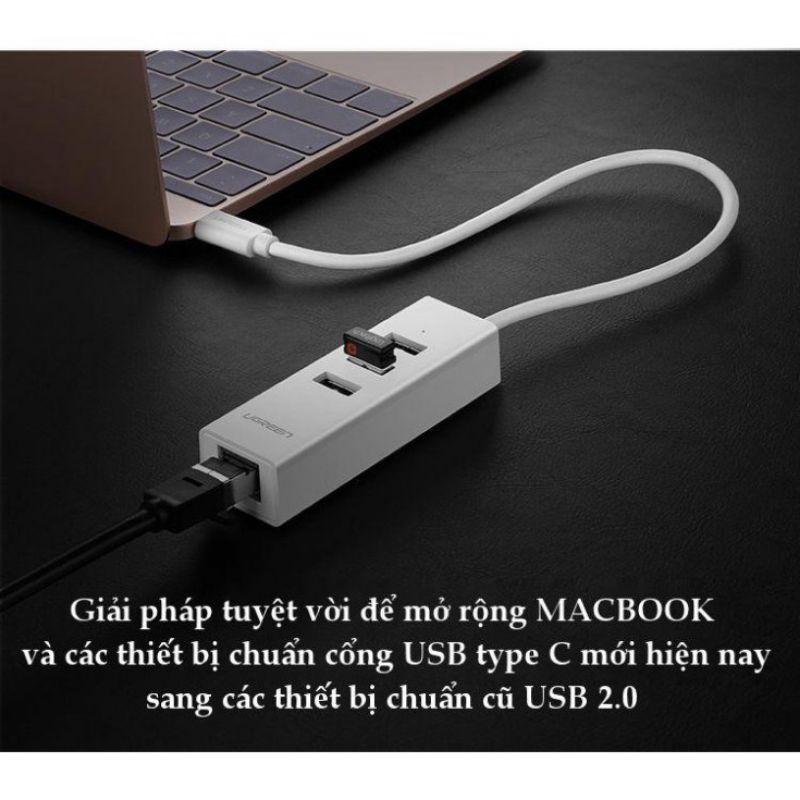 HUB Bộ chia 3 cổng USB 2.0 kèm cổng mạng Lan Ethernet RJ45 10/100 Mbps chính hãng Ugreen 30297 cao cấp