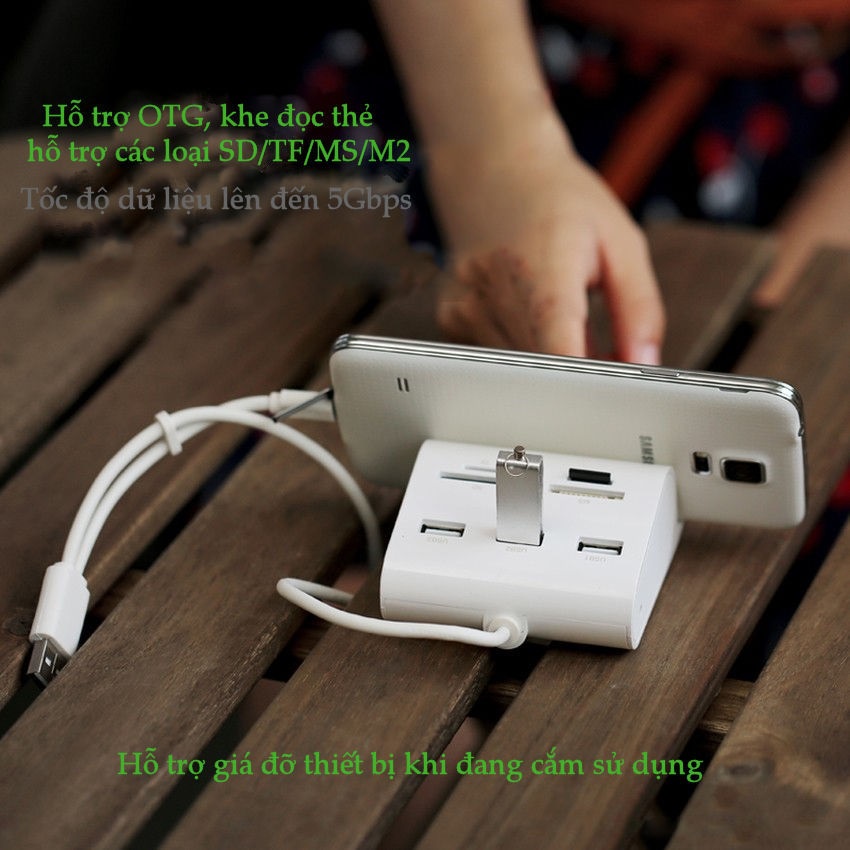 - Chức năng: Hub chia USB 3.0, tích hợp OTG, đọc thẻ nhớ