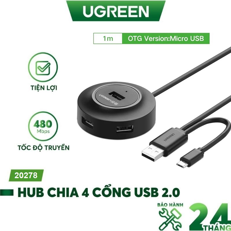 HUB Bộ Chia USB 2.0 4 Cổng Tích Hợp OTG chính hãng Ugreen 20278 - Bảo hành chính hãng 18 tháng