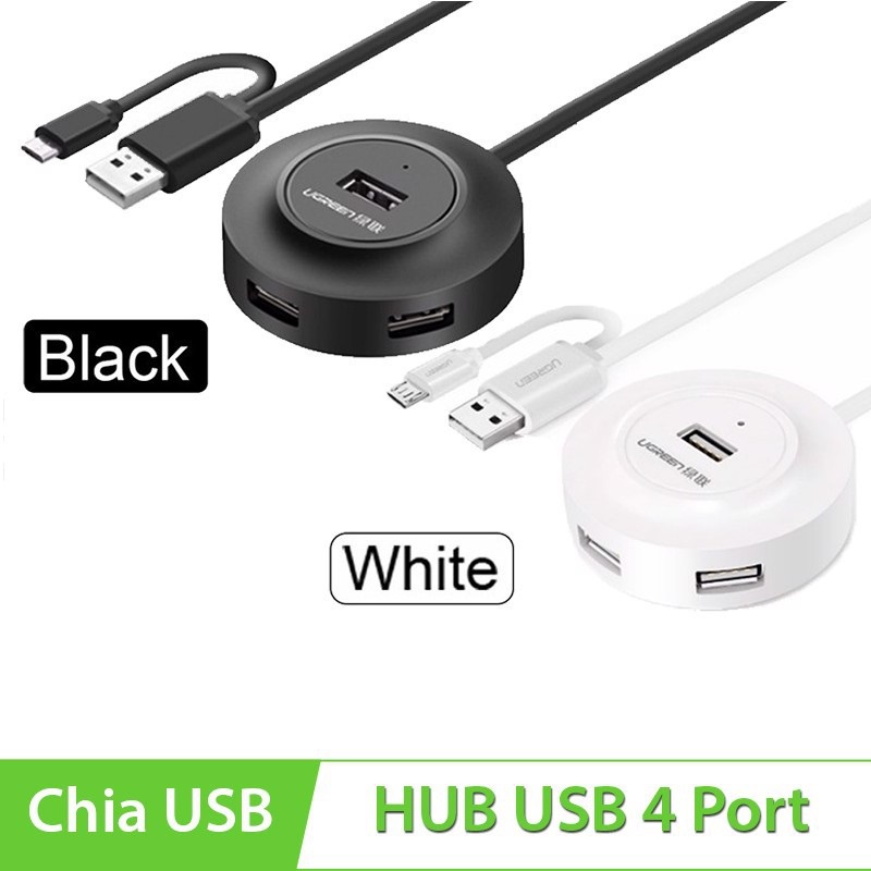 Máy tính & Laptop > Phụ Kiện Máy Tính > Bộ chia cổng USB & Đọc thẻ nhớ || HUB Bộ Chia USB 2.0 4 Cổng Tích Hợp OTG chính hãng Ugreen 20278 - Bảo hành chính hãng 18 thángCòn hàng