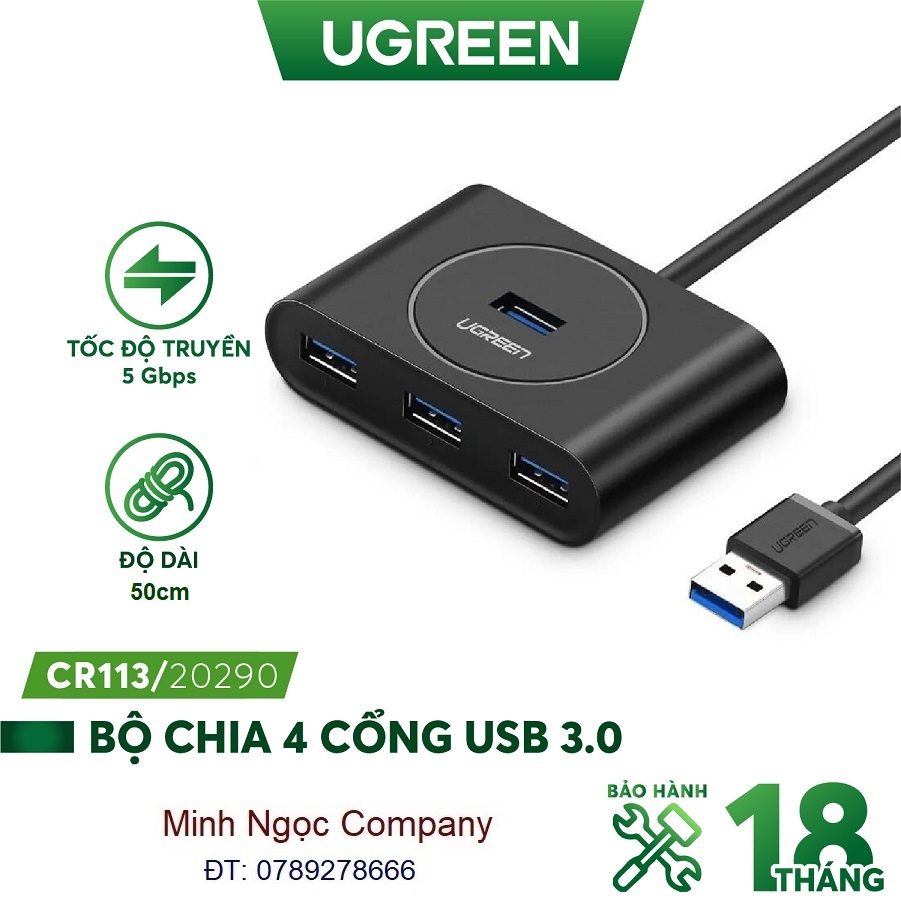 HUB bộ chia USB 3.0 1 Ra 4 Cổng Ugreen 20290 - Hàng Chính Hãng