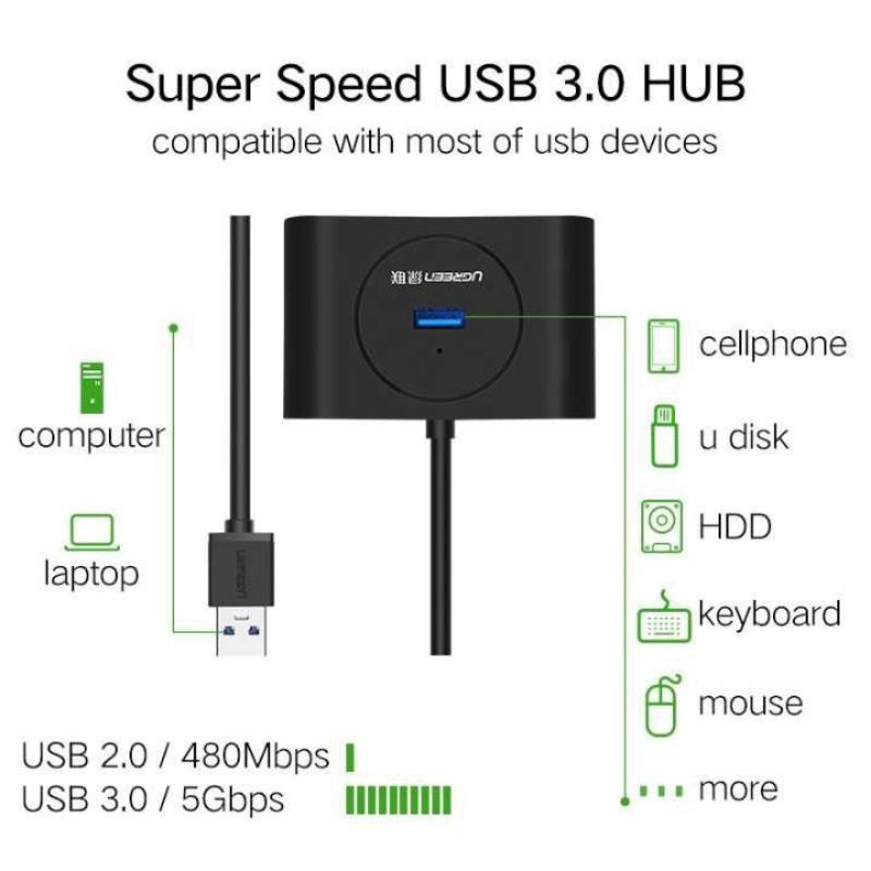 Thương hiệu: Ugreen | Xem thêm các sản phẩm Hub USB của UgreenMô tả ngắn