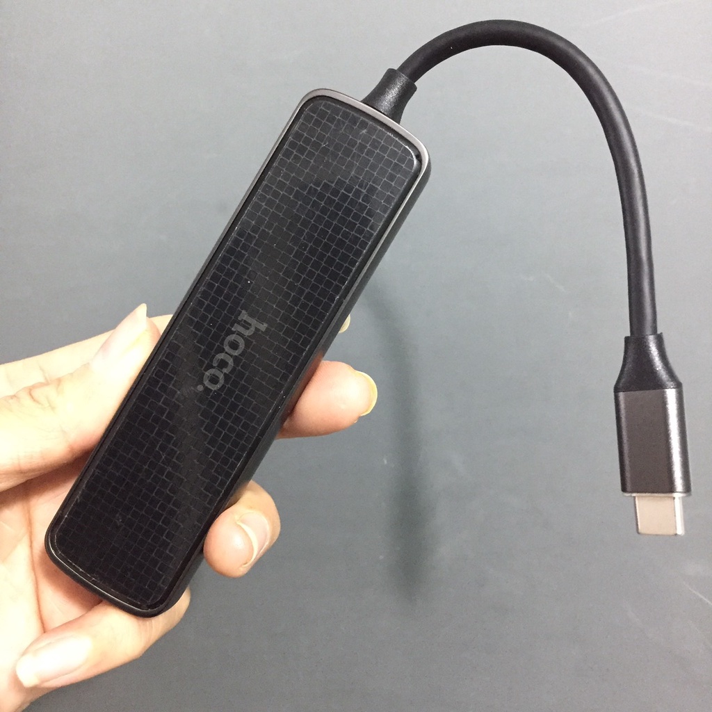 Hub/ thiết bị chuyển công type-C thương hiệu hoco, model: HB24-Intpu typ-C dương hỗ trợ OTG (thiêt bị phải hỗ trợ OTG). đèn LED báo trạng thái kết nối