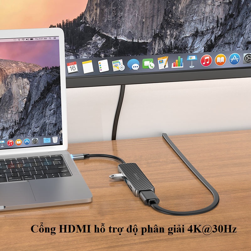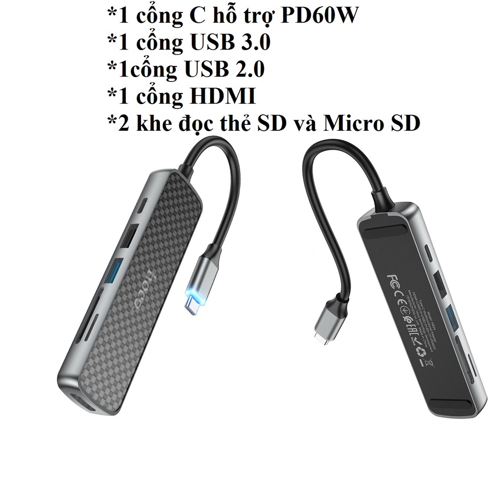 Hub/ bộ chuyển cổng type C 6 trong 1 hoco HB24