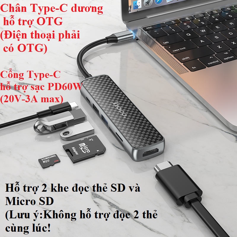 Giới thiệu Hub/ bộ chuyển cổng type C 6 trong 1 hoco HB24