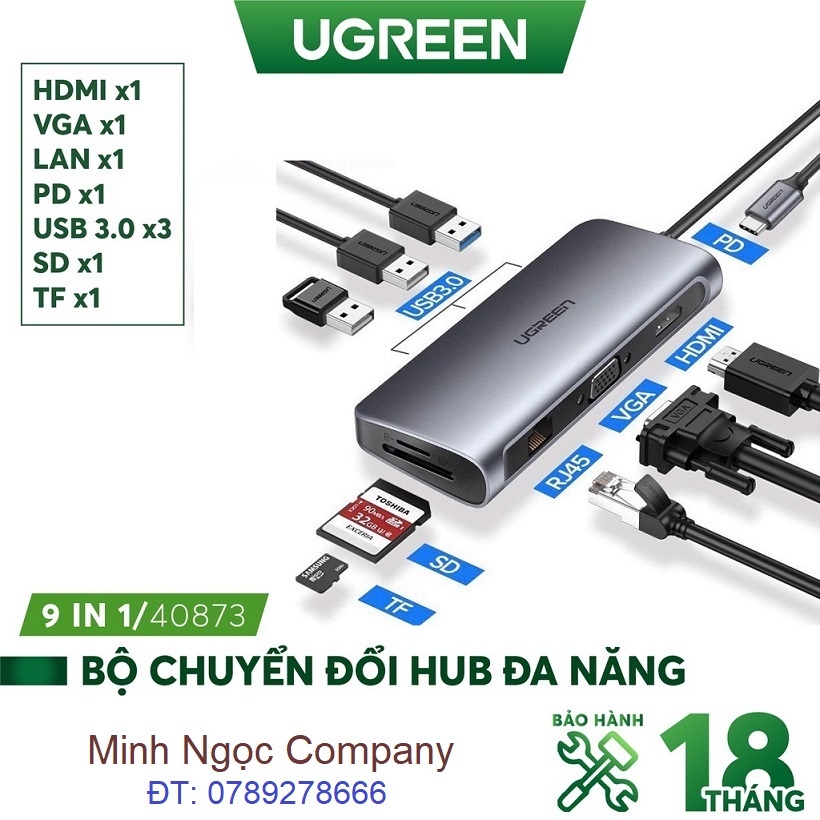 Máy tính & Laptop > Phụ Kiện Máy Tính > Bộ chia cổng USB & Đọc thẻ nhớ || HUB bộ chuyển đổi đa năng USB Type C sang các cổng HDMI+VGA+3 cổng USB 3.0+Lan Gigabit RJ45 + SD,TF Ugreen 50538 CM212Còn hàng