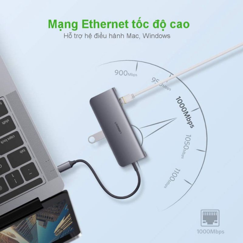 - USB C to LAN: Khả năng kết nối tốc độ cao là ưu điểm lớn nhất của Ugreen 40873 với tính năng kết nối mạng có dây cho tốc độ lên đến 1000Mbps. Thoả sức lướt web, nghe nhạc, xem phim với đường truyền internet băng thông tốc độ cao.
