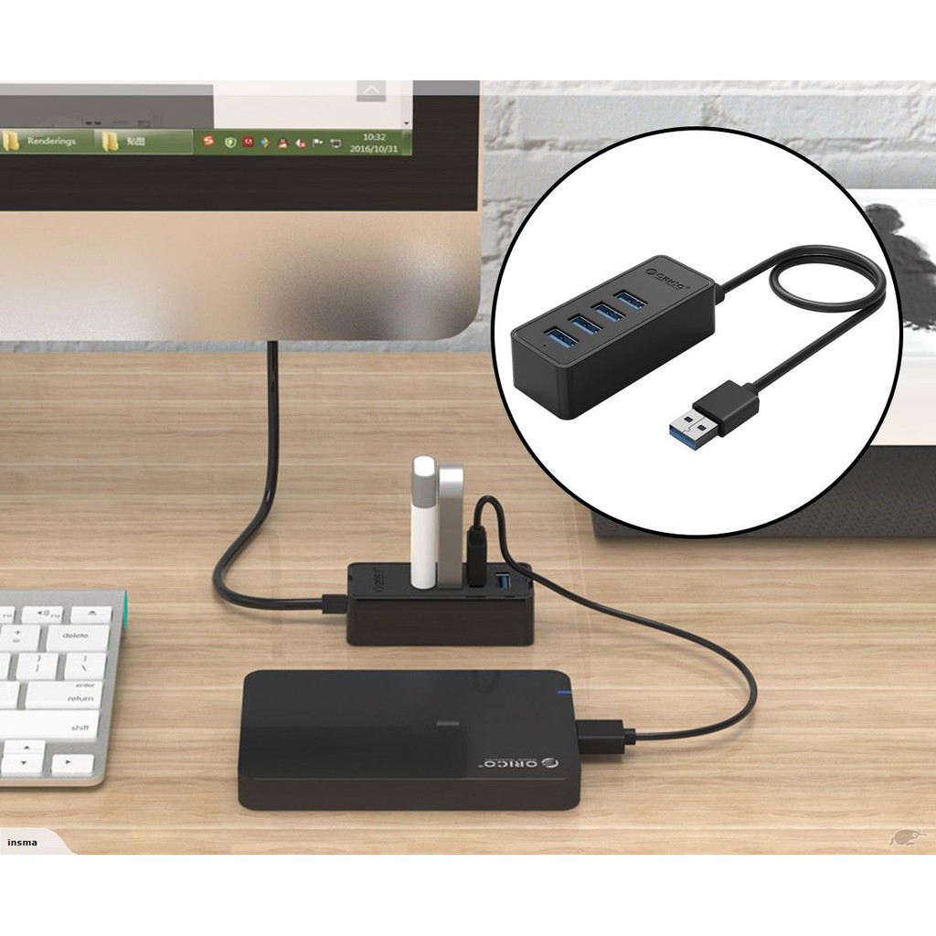 - 4 cổng đầu ra tiện lợi : Hub USB 3.0 Orico W5P-U3 4 cổng được thiết kế với khả năng đáp ứng dòng điện cho cả 4 thiết bị cùng 1 lúc, đáp ứng tốc độ không bị thay đổi quá nhiều và khả năng bảo vệ khi dòng điện quá tải và bảo vệ ngắn mạch để giữ cho nó khỏi quá áp, quá dòng, rò rỉ.