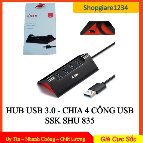 Hub chia 4 cổng USB 3.0 SSK SHU-835 . Chính Hãng 100% - Hỗ Trợ Chức Năng Như Hub Sạc (Đen)