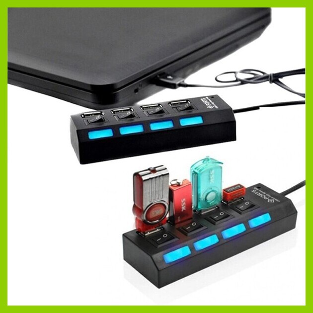 Bộ chia cổng USB Hub 4 port dùng để chuyển 1 cổng USB của máy tính thành 04 cổng USB 2.0 với 4 công tắc riêng biệt khi sử dụng.USB 2.0 High Speed Hub 4 port Hỗ trợ sử dụng tối đa 04 usb như chuột, bàn phím hoặc cắm usb.