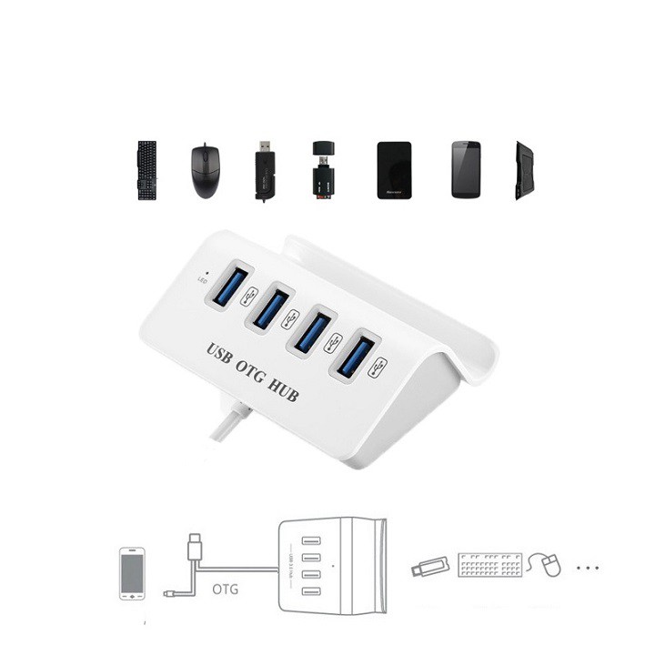 Máy tính & Laptop > Phụ Kiện Máy Tính > Bộ chia cổng USB & Đọc thẻ nhớ || Bộ Hub chia 4 Cổng USB OTG HUB kiêm Dock cho Điện Thoại & Máy TínhCòn hàng