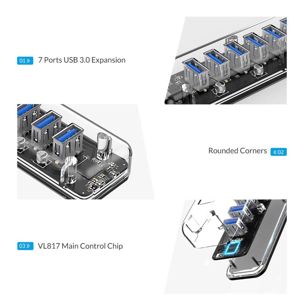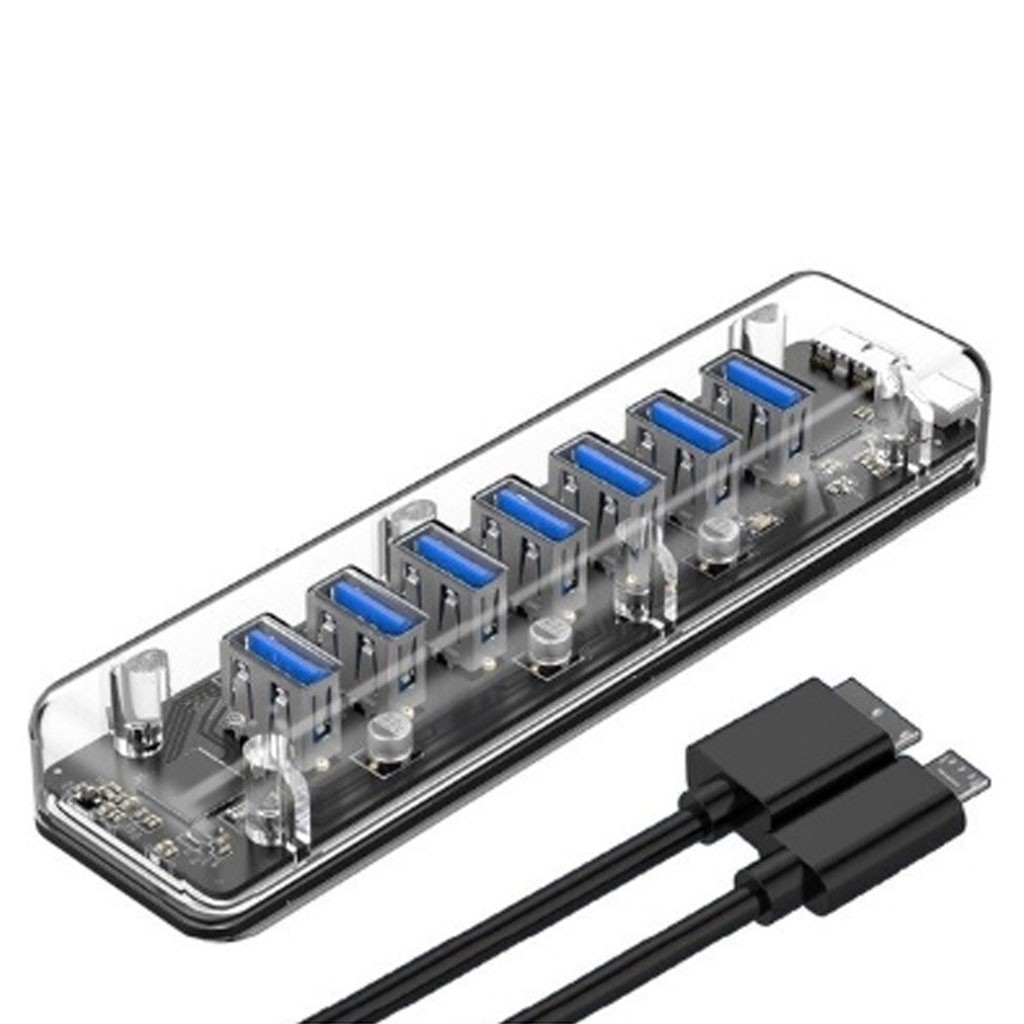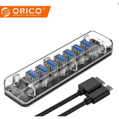 Máy tính & Laptop > Phụ Kiện Máy Tính > Bộ chia cổng USB & Đọc thẻ nhớ || Hub chia 7 cổng USB 3.0 Orico F7U-U3-CR TRANSPARENT Tốc độ truyền 5Gbp Loại trong suốt -dc4528Còn hàng