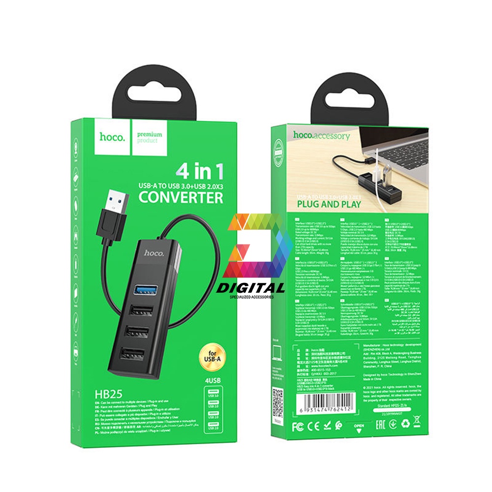 - Bộ Hub 4 cổng USB Hoco HB25 là thiết bị sở hữu một thiết kế thông minh giúp bạn dễ dàng truyền dữ liệu từ laptop qua nhiều USB cùng 1 lúc rất nhanh chóng.