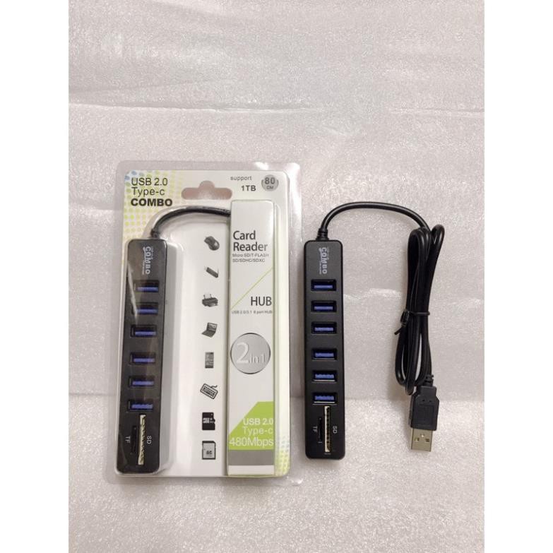 Hub chia cổng usb (6 cống) kèm 2 khe cắm thẻ nhớ Micro và SD