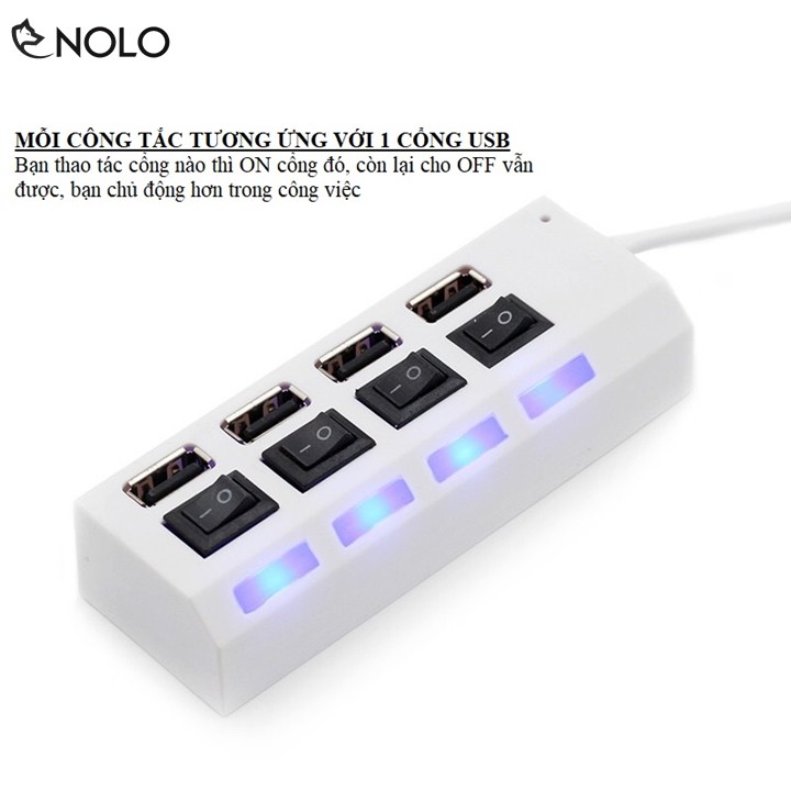 Hub Chia Cổng USB Chuẩn 2.0 Gồm 4 Port Model HB4 Có Công Tắc ON OFF Hỗ Trợ Win 10