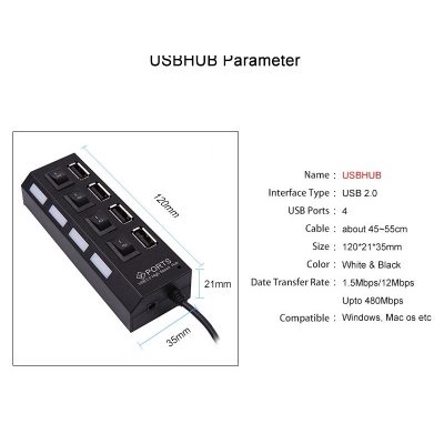 Máy tính & Laptop > Phụ Kiện Máy Tính > Bộ chia cổng USB & Đọc thẻ nhớ || Hub chia cổng USB có công tắc kích hoạt 4 cổng - 7 cổngCòn hàng