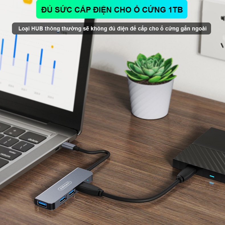 HUB Type C và HUB USB 3.0 tốc độ cao SIDOTECH cổng chia usb mở rộng kết nối chuyển đổi cho Macbook Laptop PC• Tốc độ truyền tải 3.0 nhanh gấp 10 lần 2.0 thông thường