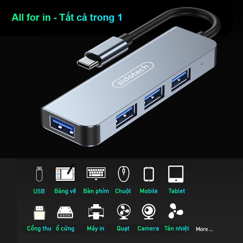 HUB Type C và HUB USB 3.0 tốc độ cao SIDOTECH cổng chia usb mở rộng kết nối chuyển đổi cho Macbook Laptop PC