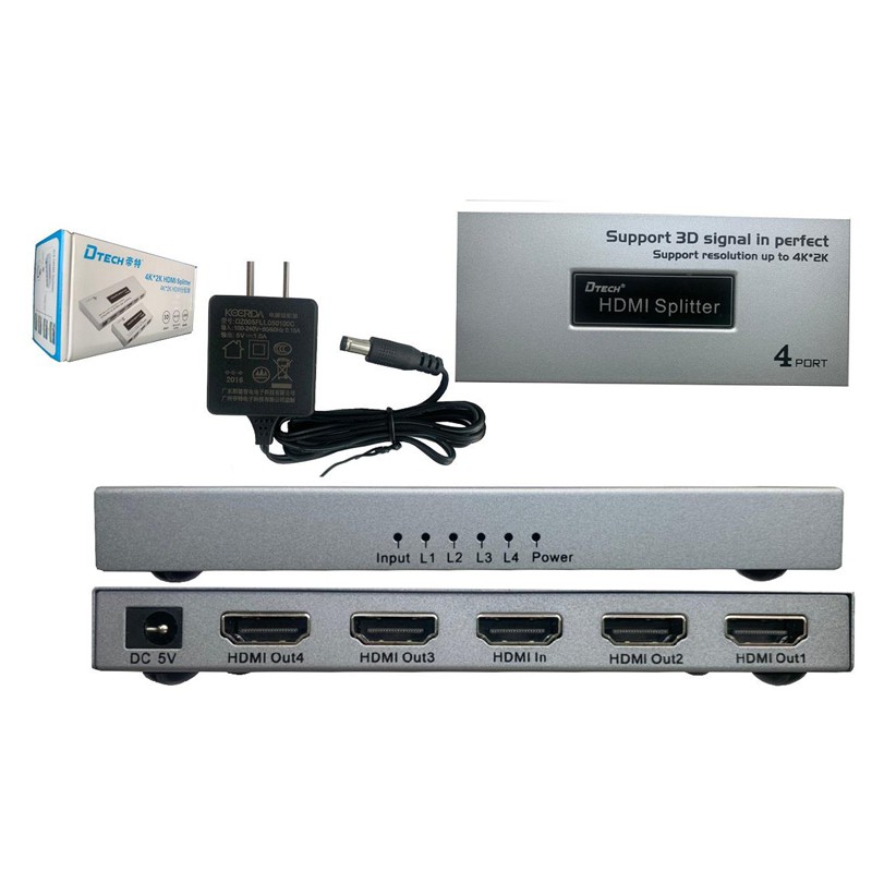 Bộ hub chia HDMI 1 ra 4 cổng 4K Dtech DT-7144A mini