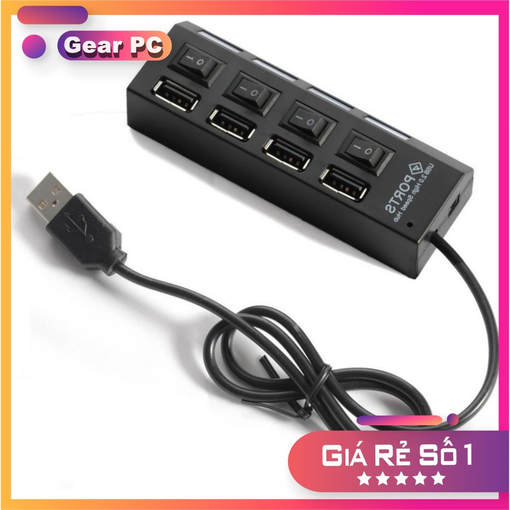 Hub chia USB 1 ra 4 có công tắc 2.0 - Chia 1 cổng USB thành 4 cổng USB tốc độ 2.0 - Máy Tính Báo Hồng