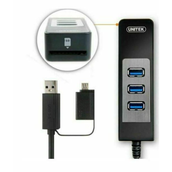 Máy tính & Laptop > Phụ Kiện Máy Tính > Bộ chia cổng USB & Đọc thẻ nhớ || HUB CHIA USB 3.0 TỪ 1 RA 3 CỔNG + ĐỌC THẺ NHỚ SD CÓ ĐẦU CHUYỂN ĐỔI USB SANG OTG UNITEK Y 3048A CHIA CỔNG USBCòn hàng