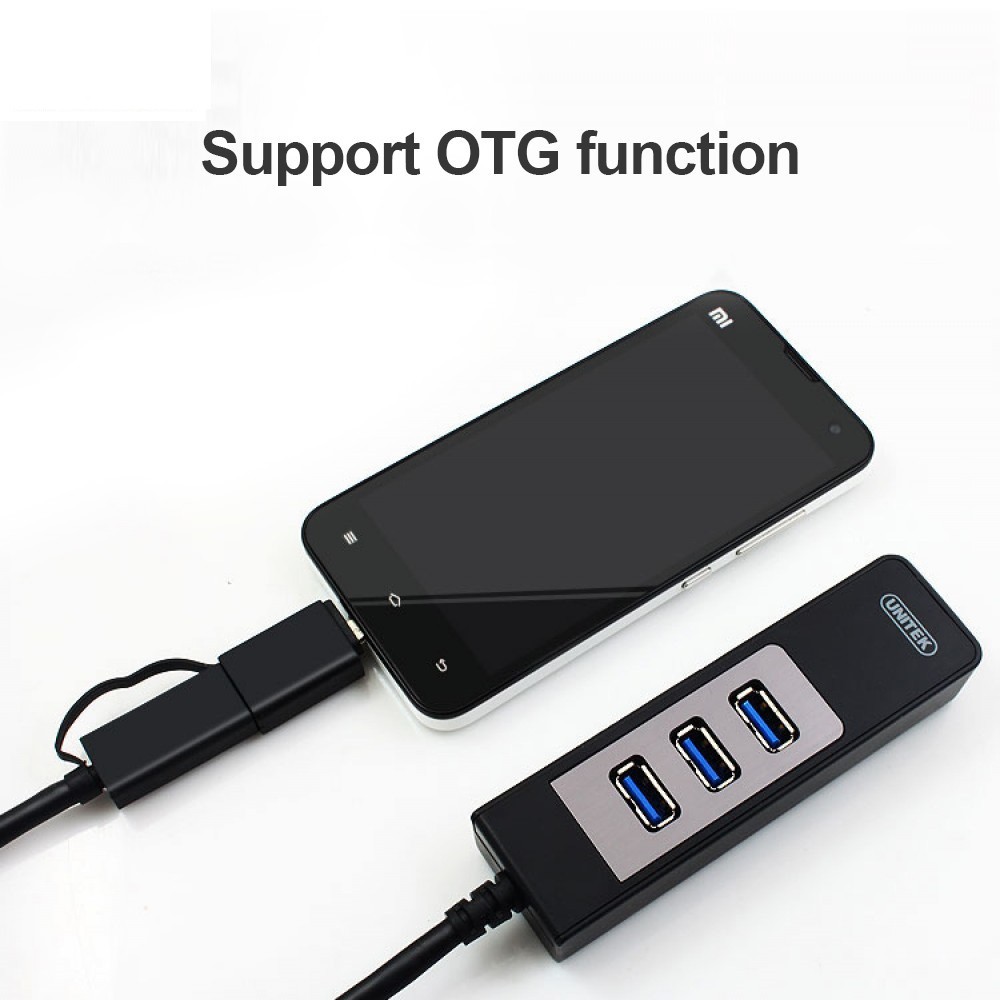 HUB CHIA USB 3.0 TỪ 1 RA 3 CỔNG + ĐỌC THẺ NHỚ SD CÓ ĐẦU CHUYỂN ĐỔI USB SANG OTG UNITEK Y 3048A CHIA CỔNG USB