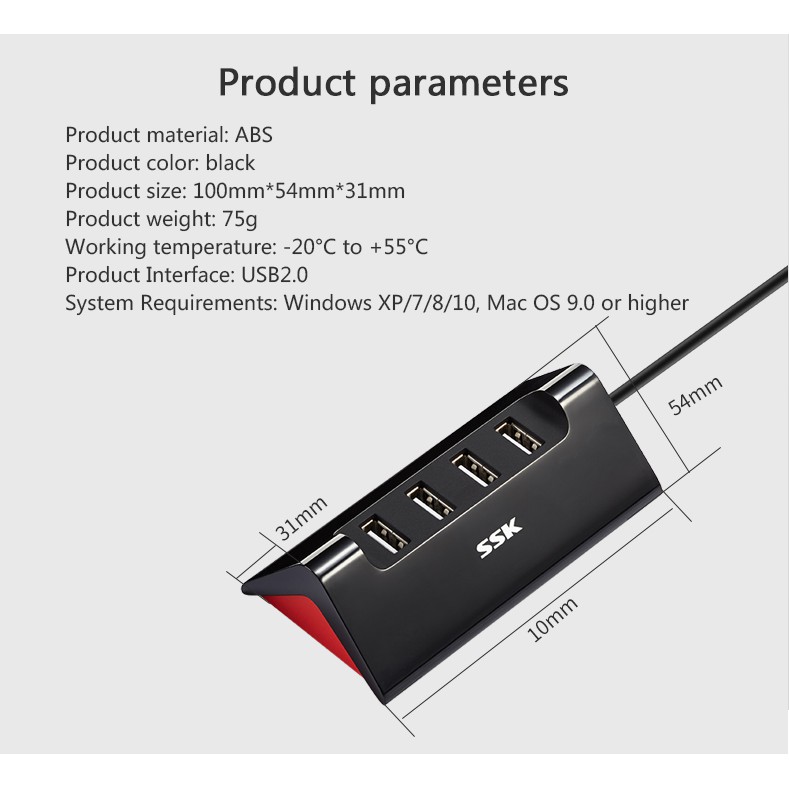 - HUB 4-1 USB 2.0 SSK (SHU830)Cổng vào : USB 2.0 (480Mbps)