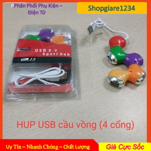 Máy tính & Laptop > Phụ Kiện Máy Tính > Bộ chia cổng USB & Đọc thẻ nhớ || Hub chia USB 4 Cổng ngũ sắc, hình cầu vồngCòn hàng