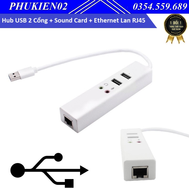 Máy tính & Laptop > Phụ Kiện Máy Tính > Bộ chia cổng USB & Đọc thẻ nhớ || HUB chia USB có SoundCard và Cổng Mạng mở rộng RJ45Còn hàng