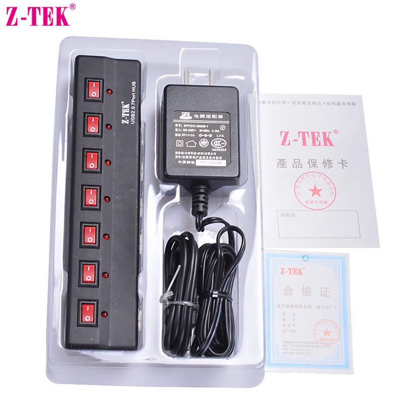 Hub chia usb từ 1 ra 7 cổng usb 2.0 Ztek 532A / ZS 0349 có Adapter nguồn ngoàiThương hiệu : ZTEK