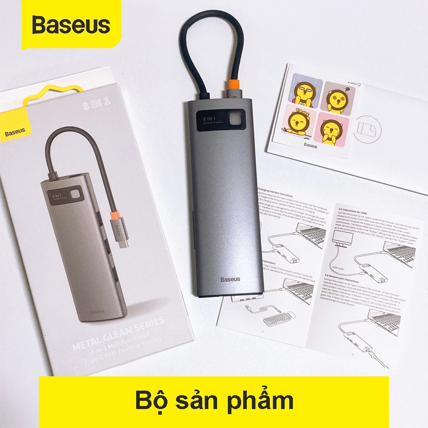 Hub Type C Baseus 8 in 1 cho Laptop Macbook ( Usb Type-C sang HDMI/ USB3.0/ LAN / PD 100W/TF/SD) Metal GleamCó 4 phiên bản :