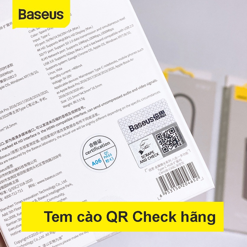 Hub Type C Baseus 8 in 1 cho Laptop Máy Tính ( Usb Type-C chia sang HDMI 4K / USB3.0/ LAN / PD 100W/TF/SD)