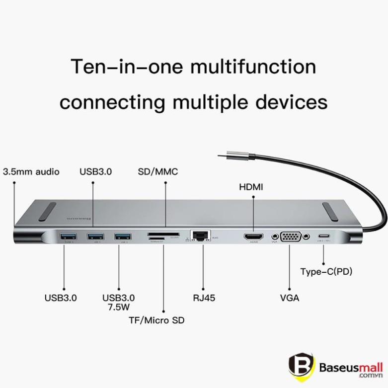 Máy tính & Laptop > Phụ Kiện Máy Tính > Bộ chia cổng USB & Đọc thẻ nhớ || Bộ Hub chuyển đa năng 11 in 1 Baseus Enjoyment Type CCòn hàng