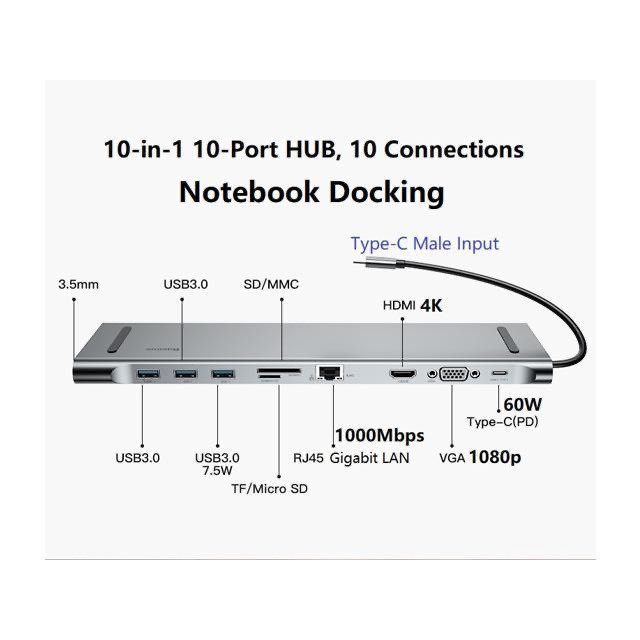 ✔️ Bộ Hub chuyển đổi có ngỏ vào là cổng USB Type-C và ngỏ ra là hầu hết các chuẩn giao tiếp phổ thông hiện nay như: USB 2.0/ USB 3.0 / HDMI/ VGA/ USB 3.0/ Card Reader/ RJ-45/AUX 3.5mm...