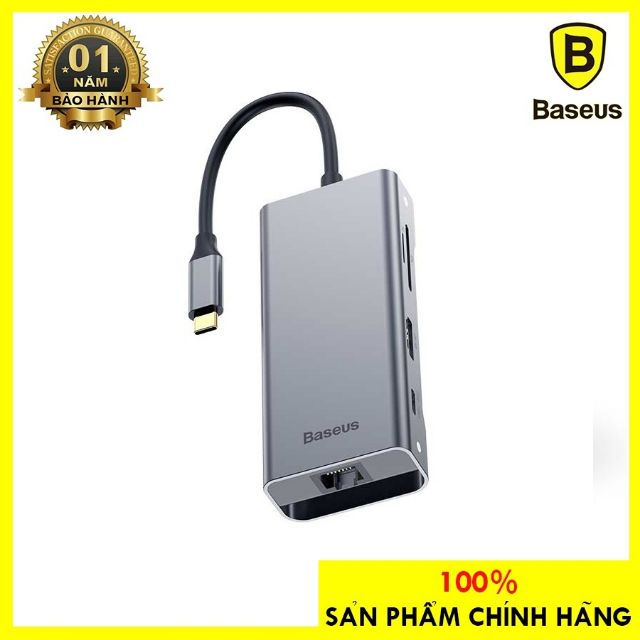 ✔️Cổng chuyển đổi Baseus Metal Gleam Hub Type C 9-IN-1 hỗ trợ mở rộng 4K HD + 3 * USB3.0 + SD + TF + RJ45 + PD