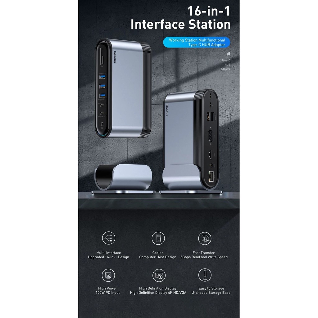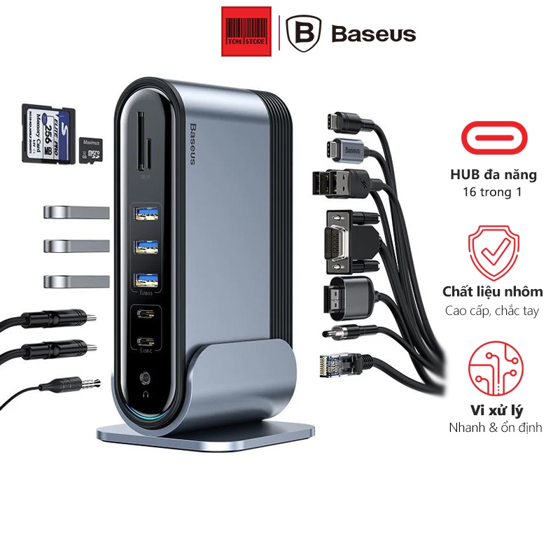 Giới thiệu Hub chuyển đa năng Baseus Working Station 16 in 1 Multifunctional (Type C*4 / HDMI / VGA / RJ-45 Gigabit / SD,TF Card)