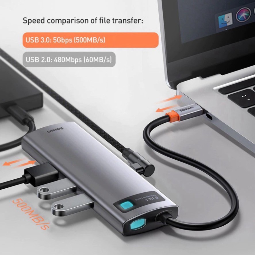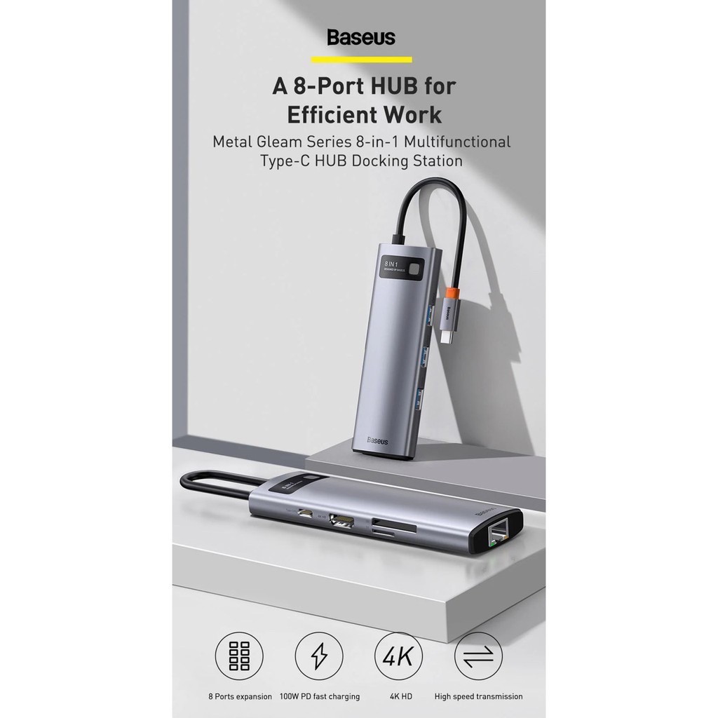Giới thiệu Cáp Chuyển Hub Type C Baseus 8 in 1 (Type-C to 3xUSB3.0+HDMI+SD/TF Card Reader+PD Mang Lan RJ45)