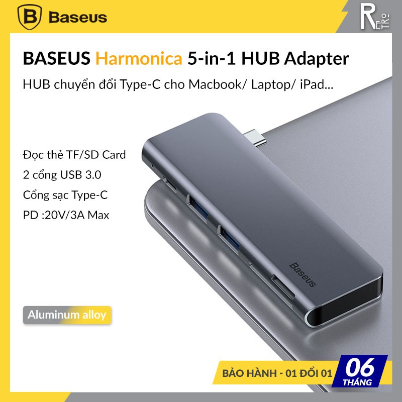 - Bộ Hub chuyển đổi 5 trong 1 Baseus Harmonica có thiết kế đẹp , nhỏ gọn. Bề mặt bằng kim loại màu xám bạc được sơn tỉnh điện cao cấp chống bám vân tay . Thiết kế tinh tế, sang trọng và đẳng cấp .