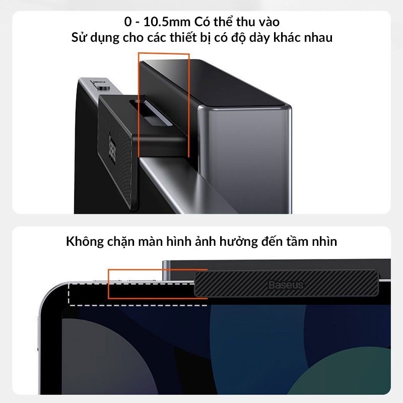💻 Clip có thể mở rộng ra từ 0 - 10.5mm và có thể thu vào dể dàng sử dụng cho các máy tính bảng khác nhau có độ dày khác nhau. đặt biệt không chặn vào màn hình không làm ảnh hưởng tầm nhìn