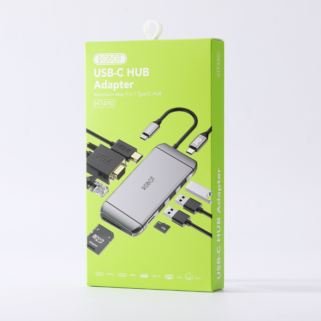 HUB Chuyển Đổi 9in1 ROBOT HT490 Type-c cổng kết nối USB 3.0/2.0/ HDMI/PD/SD/TF/PD/VGA/Ultra HD 4KModel : HT490