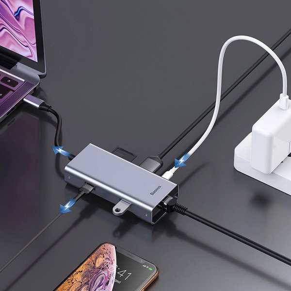 Giới thiệu HUB chuyển đổi Baseus 7in1 USB TypeC sang USB3.0x2 + USBC (PD) + RJ54 + TF / SD