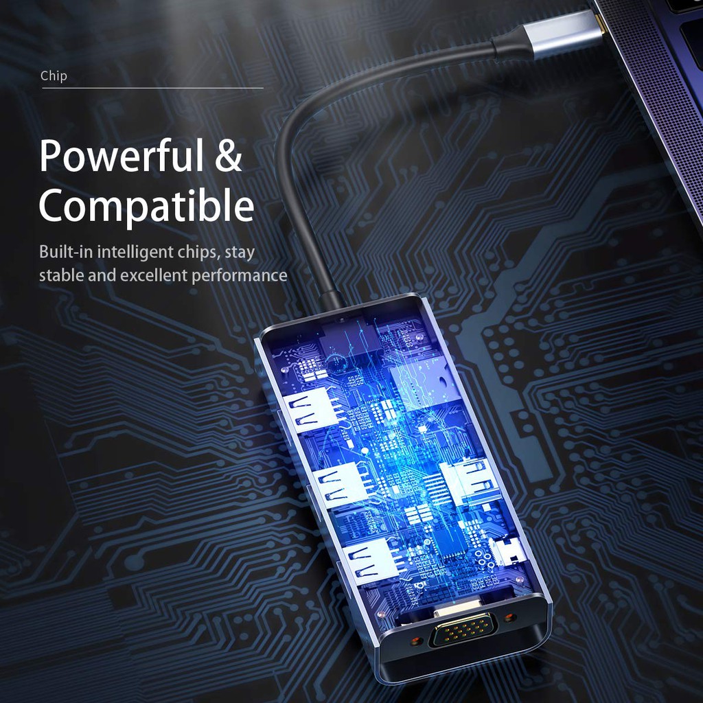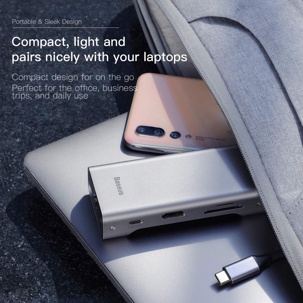 Giới thiệu HUB chuyển đổi Baseus 8in1 USBC To 4K HDMI,VGA,PD Charging Port,3 USB 3.0 , SD /TF Card