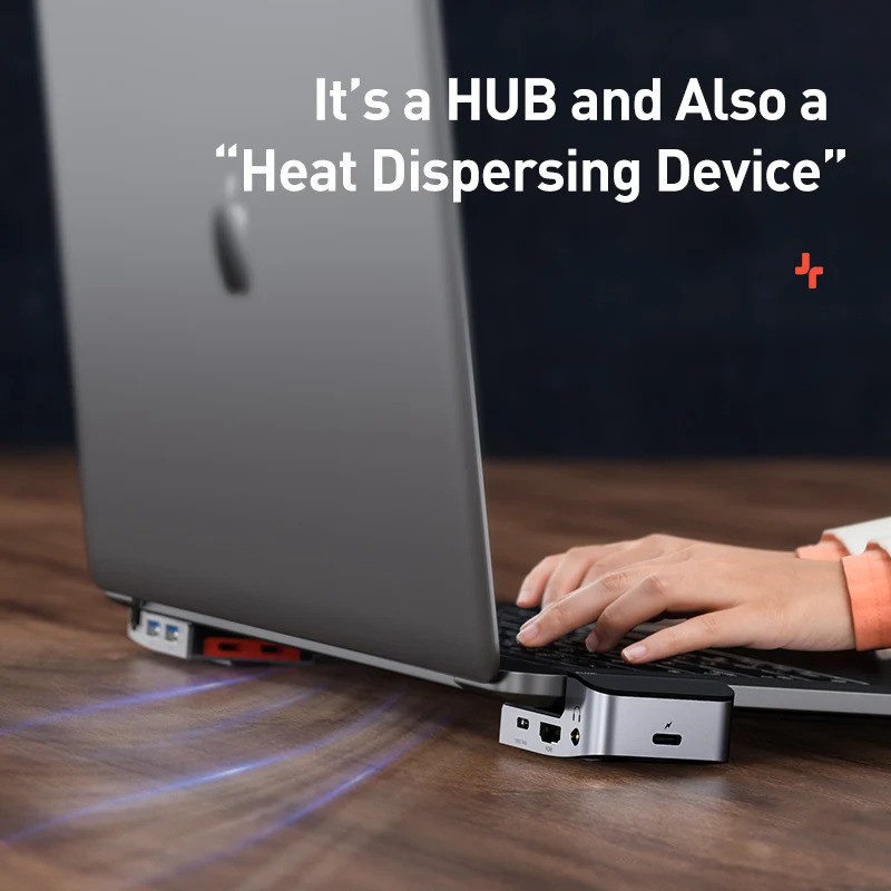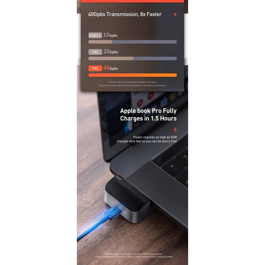 HUB chuyển đổi chân TYPE-C tích hợp giá đỡ BASEUS cho MacBook Pro Thunderbolt 3 sang cổng USB/HDMI/RJ45/TYPE-C/3.5MM