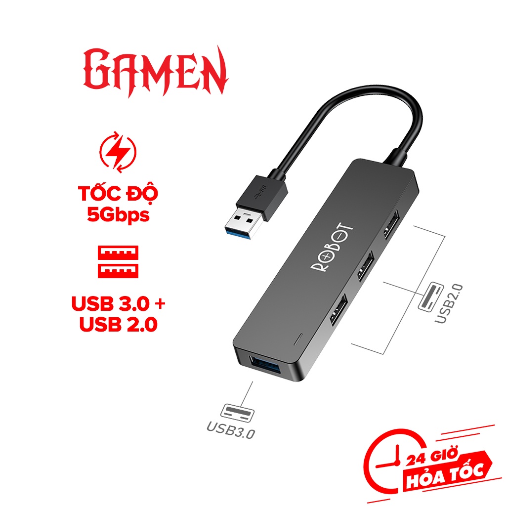 USB Hub Chuyển Đổi ROBOT H160 USB A Sang 4 Cổng USB 3.0 USB 2.0 Tốc Độ Truyền Tải Tối Đa 5Gbps
