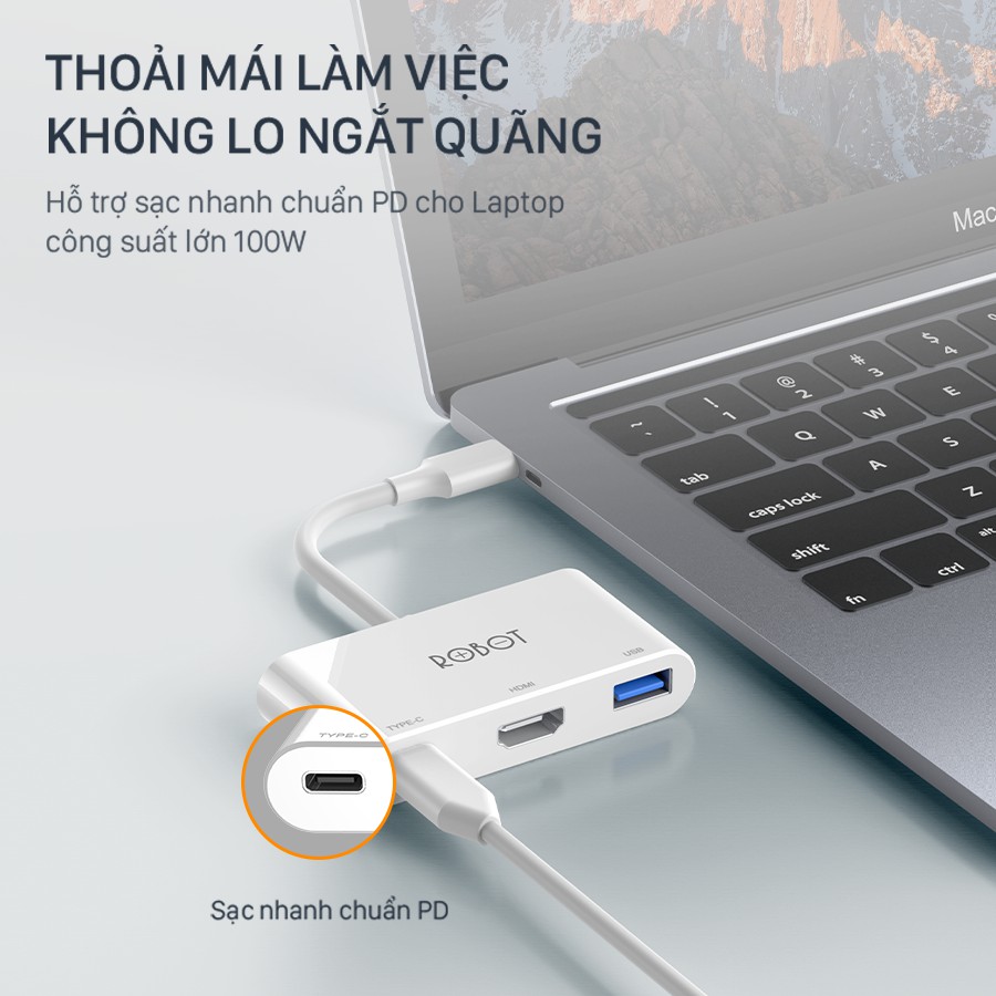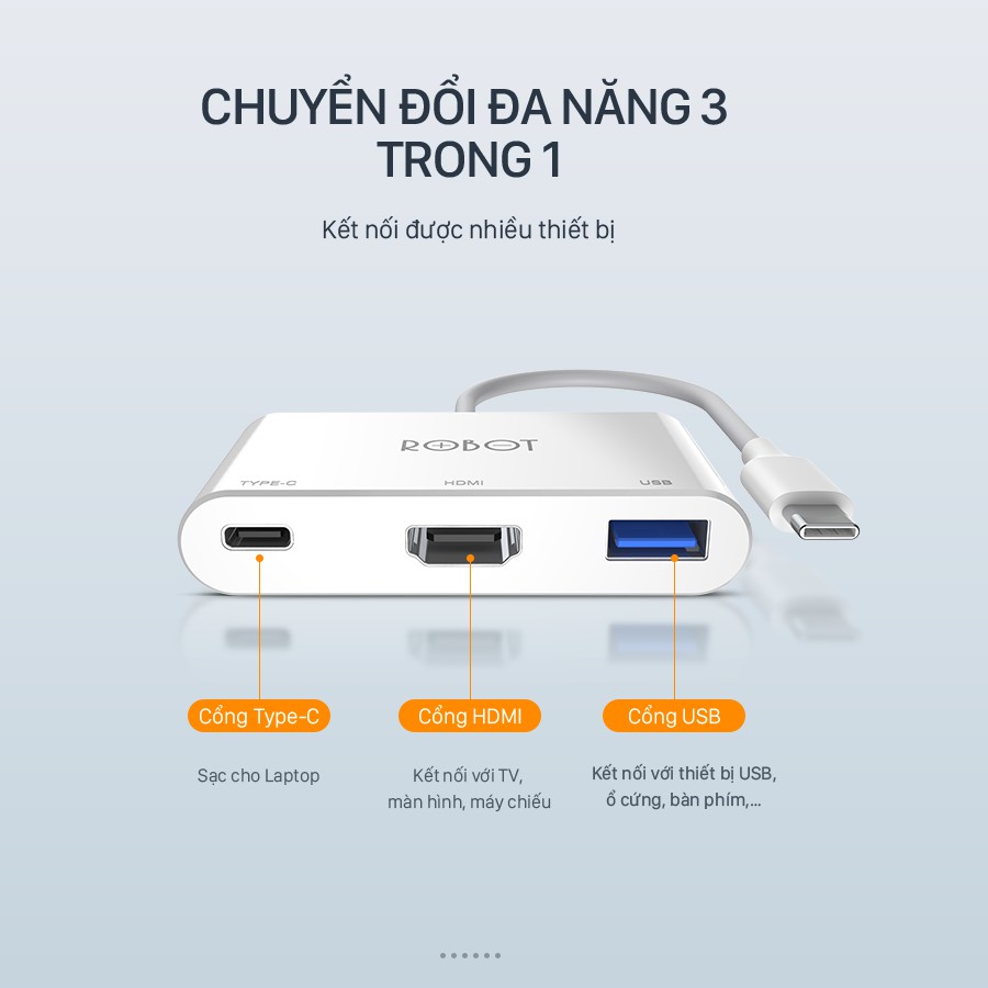 HUB CHUYỂN ĐỔI TYPE-C ĐA NĂNG 3 IN 1 TYPE-C/ HDMI/ USB ROBOT HT430 KẾT NỐI NHIỀU THIẾT BỊ LAPTOP, MÁY CHIẾU, TVSản phẩm chính hãng ROBOT