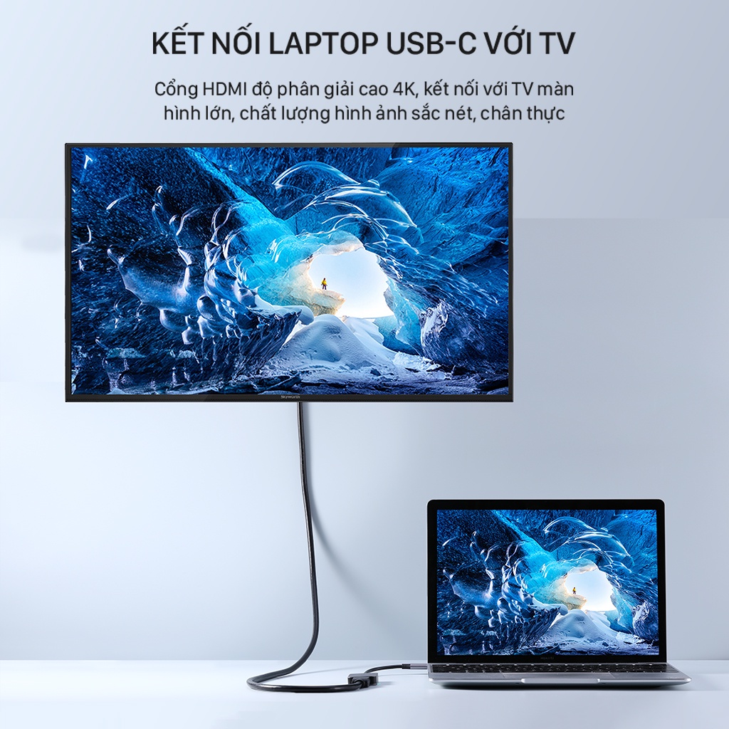 - Kết nối USB-C với Tivi, máy chiếu cho độ phân giải 4k sắc nét đồng bộ âm thanh và hình ảnh
