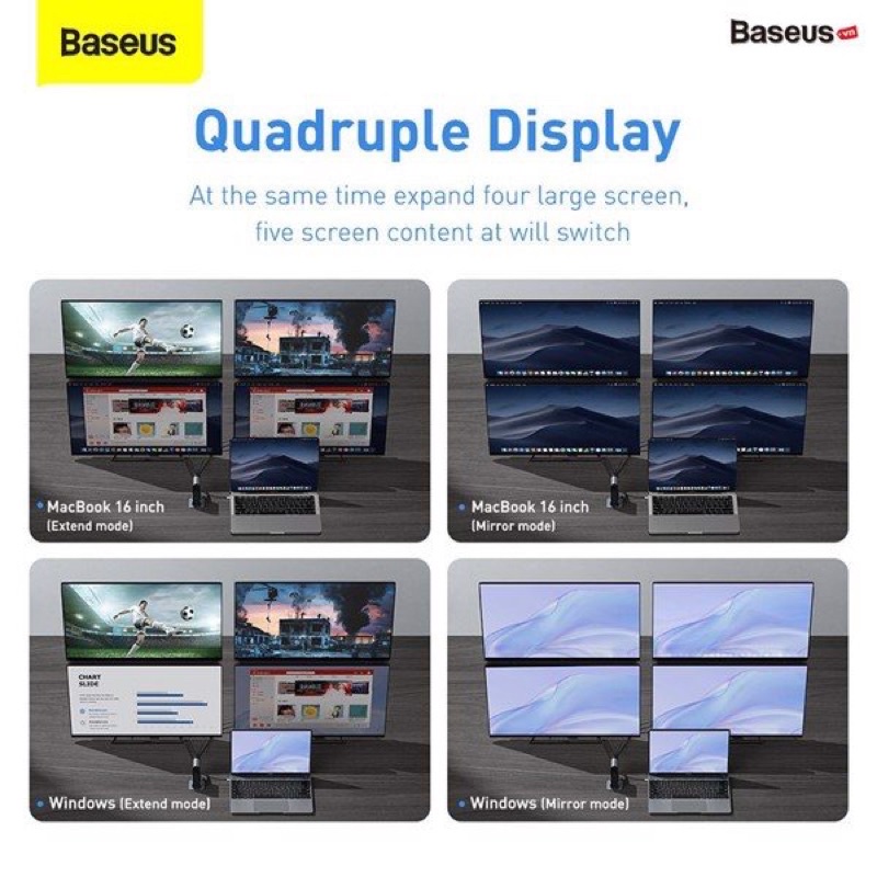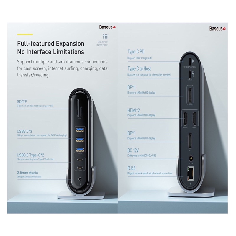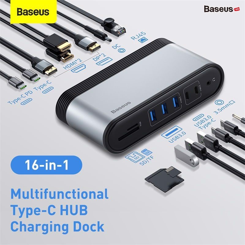 Máy tính & Laptop > Phụ Kiện Máy Tính > Bộ chia cổng USB & Đọc thẻ nhớ || Hub chuyển đổi đa năng 16 trong 1 Baseus Working Station Four-Screen Multifunctional Type-C HUB Adapter(Xuất 4 màn hình)Còn hàng
