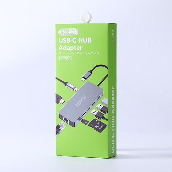 HUB CHUYỂN ĐỔI CỔNG TYPE-C ĐA NĂNG 8 TRONG 1 ROBOT HT380 - CỔNG RA USB 3.0/ USB 2.0/ SD/ MICRO SD/ PD/ HDMI/ VGA/ LAN - BẢO HÀNH 12 THÁNGThương hiệu liên kết: ROBOT