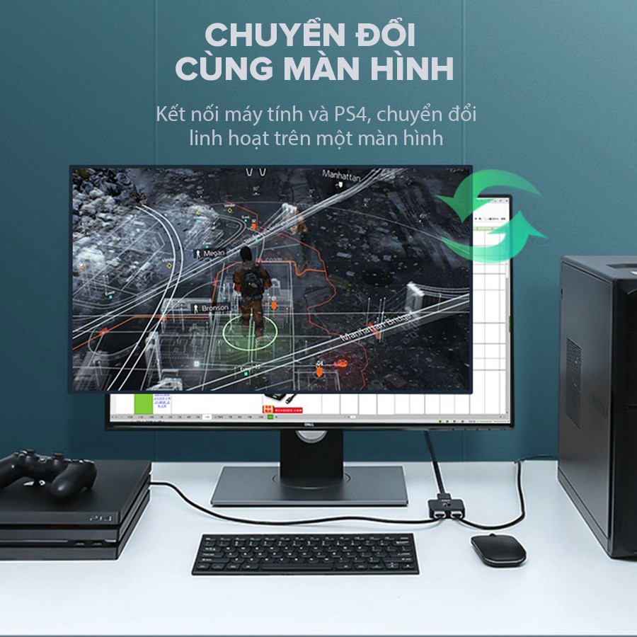 - Bộ chuyển đổi HDMI hai chiều có thể dùng để kết nối nhiều thiết bị với nhau, có thể chuyển đổi linh hoạt giữa các thiết bị HDMI chỉ với một nút bấm, giải pháp phù hợp khi số cổng HDMI của màn hình hiển thị không đủ đáp ứng.