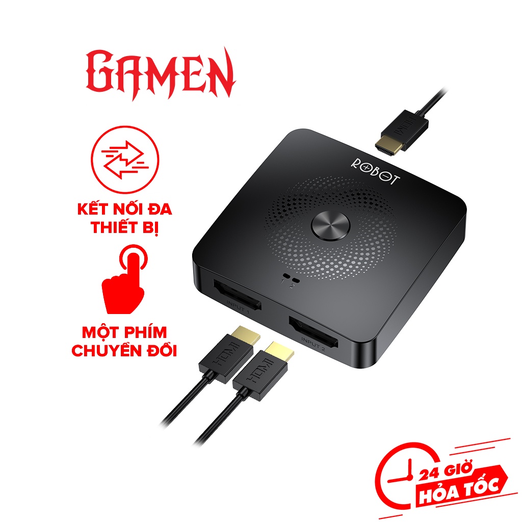 - HUB ROBOT HM103 giúp kết nối máy tính và PS4, kết nối thiết bị chơi game/ đầu thu TV, có thể chuyển đổi linh hoạt trên cùng 1 màn hình thông qua 1 nút chuyển đổi.